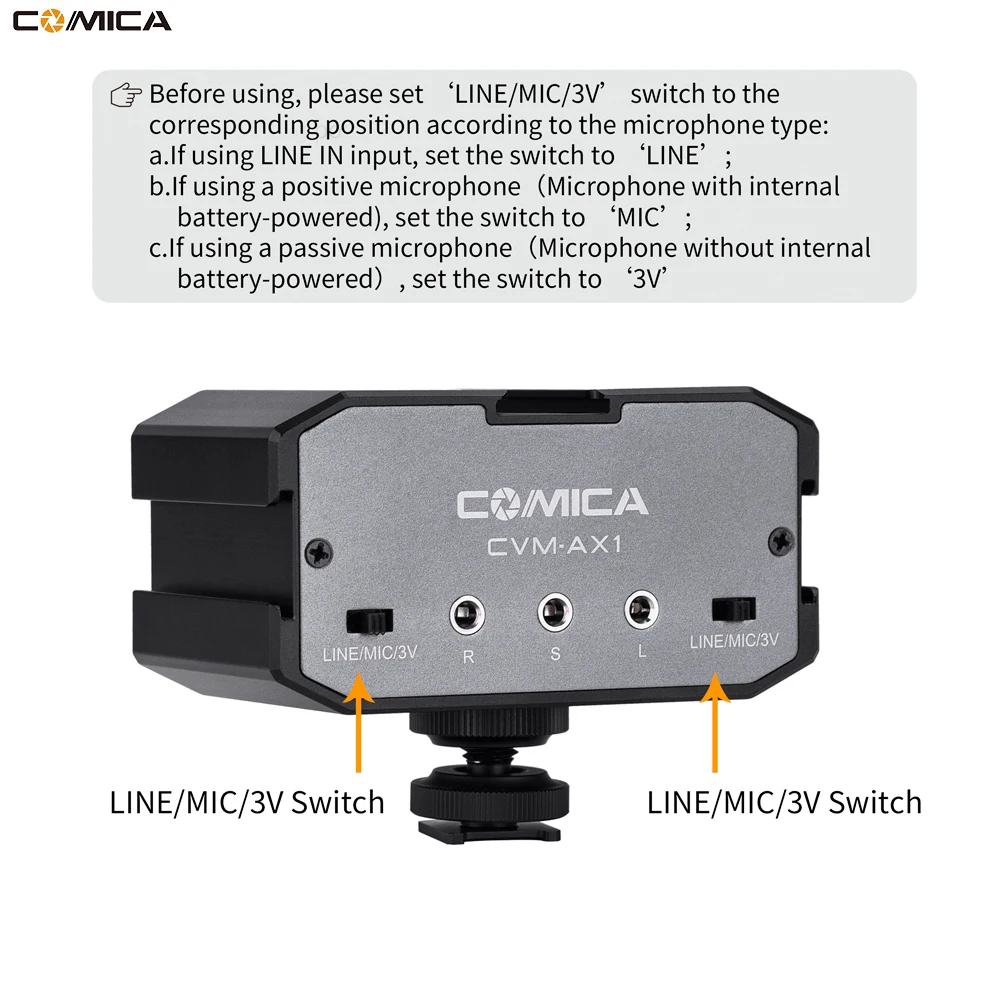 - Product name : COMICA CVM-AX1 3.5mm Universal dula channels Microphone Amplifier Audio Mixer Adapter for Canon EOS